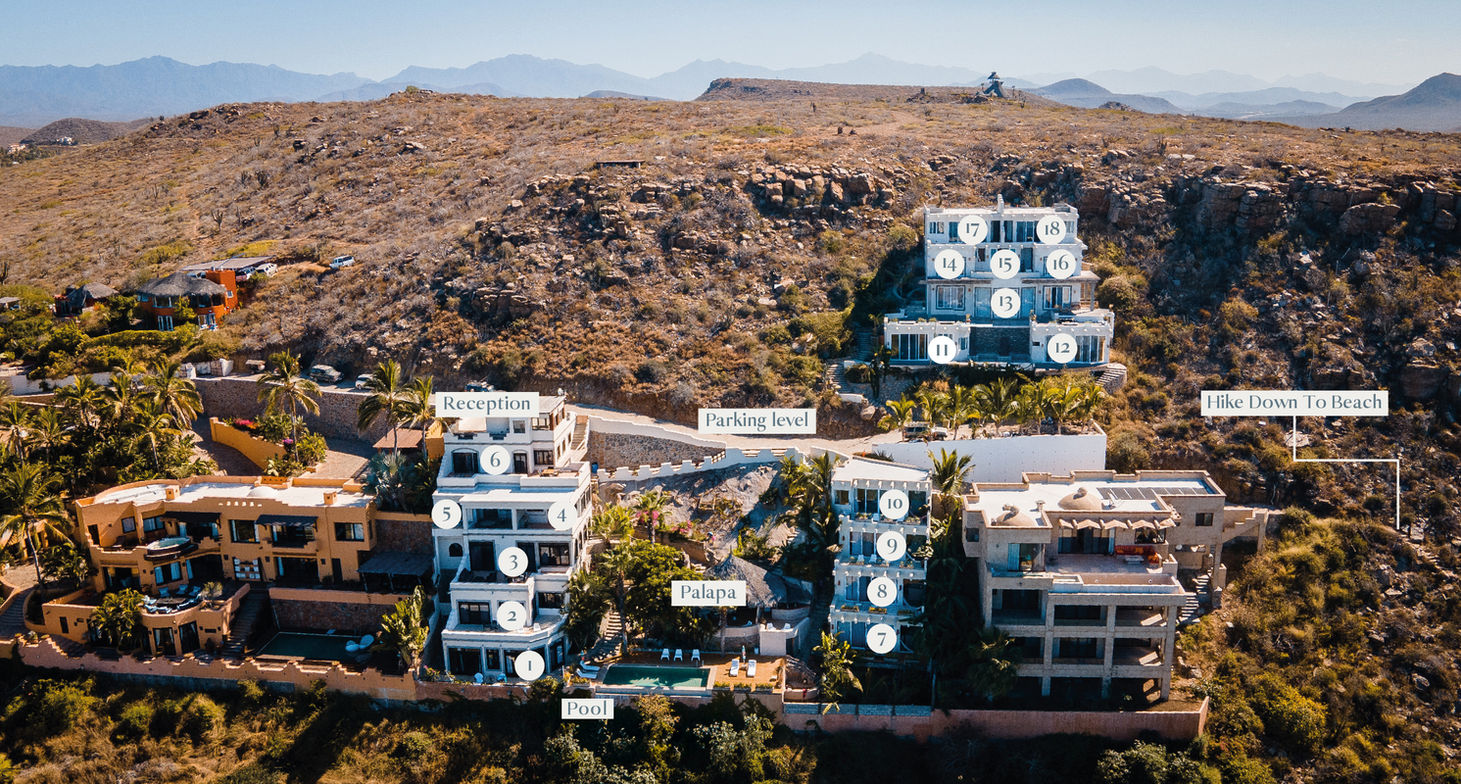 Whale and bird watching, colorful sunrises and sunsets are all extras to the everyday spectacular views from 8. The sleek modern design of this suite includes a king size bed, shower with an ocean view, snack area and private terrace. The snack area has coffee maker, mini-fridge and toaster for simple continental style breakfasts or snacks. This unit is located on the second level up from the pool.